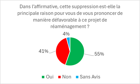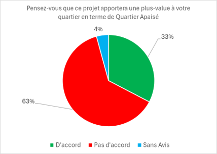 En effet, 68,5 % des riverains de la zone d’enquête ont indiqué être défavorables au projet dans sa globalité et 63,7 % des répondants sont opposés à la fermeture de l’avenue Broustin.